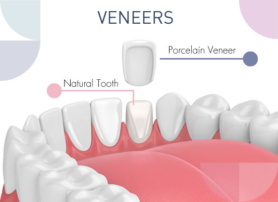 Dental veneers are wafer-thin laminates or shells of tooth-colored material (which can be either porcelain, ceramic or composite bonding material). They are “cemented” to the front surface of teeth to improve their cosmetic appearance. dentists use the analogy that dental veneers are for your teeth what false fingernails are for your hands